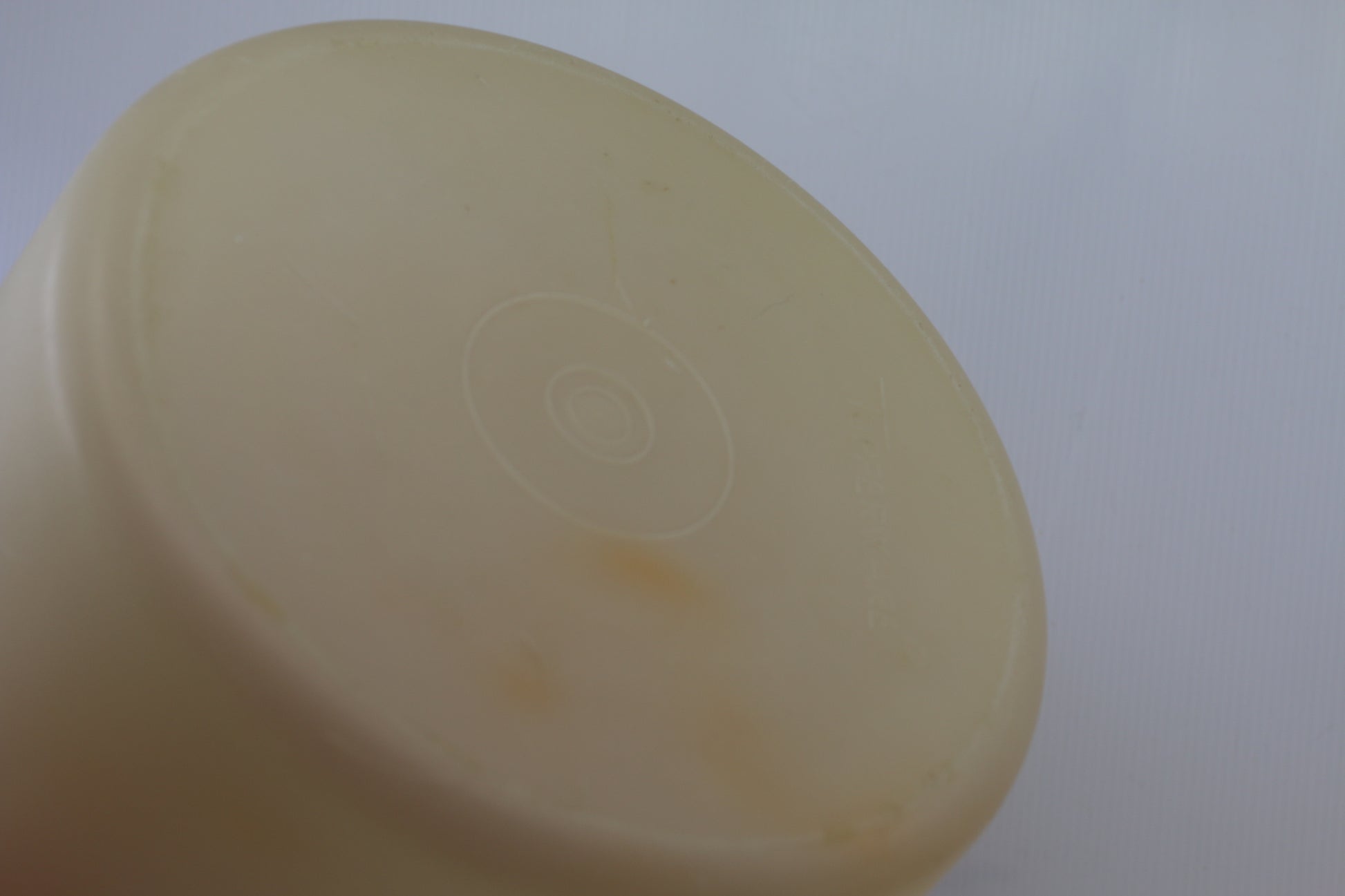 Yellowing is permanent and age-related, common with vintage Tupperware
