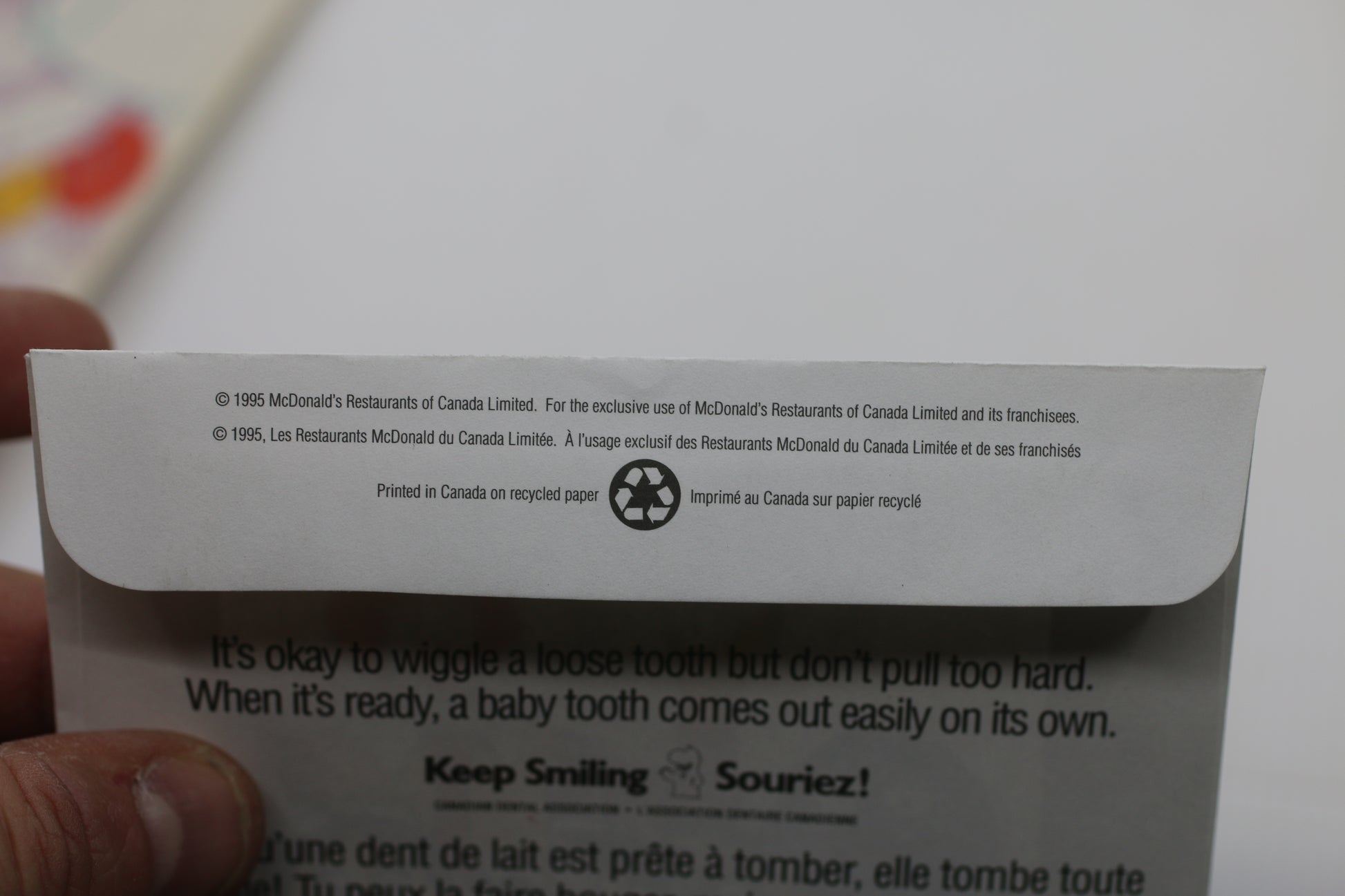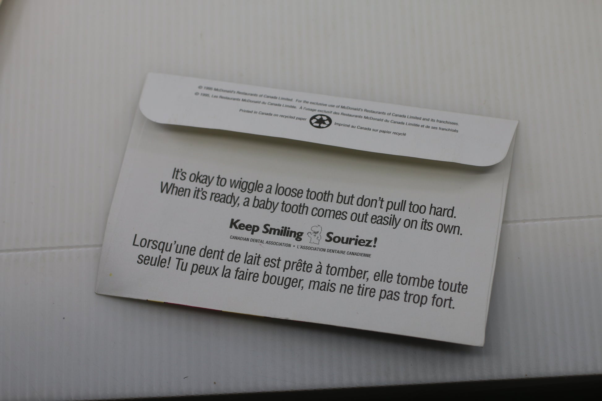 Original vintage McDonaldland promotional envelope from 1985, distributed in Canada in partnership with the Canadian Dental Association.