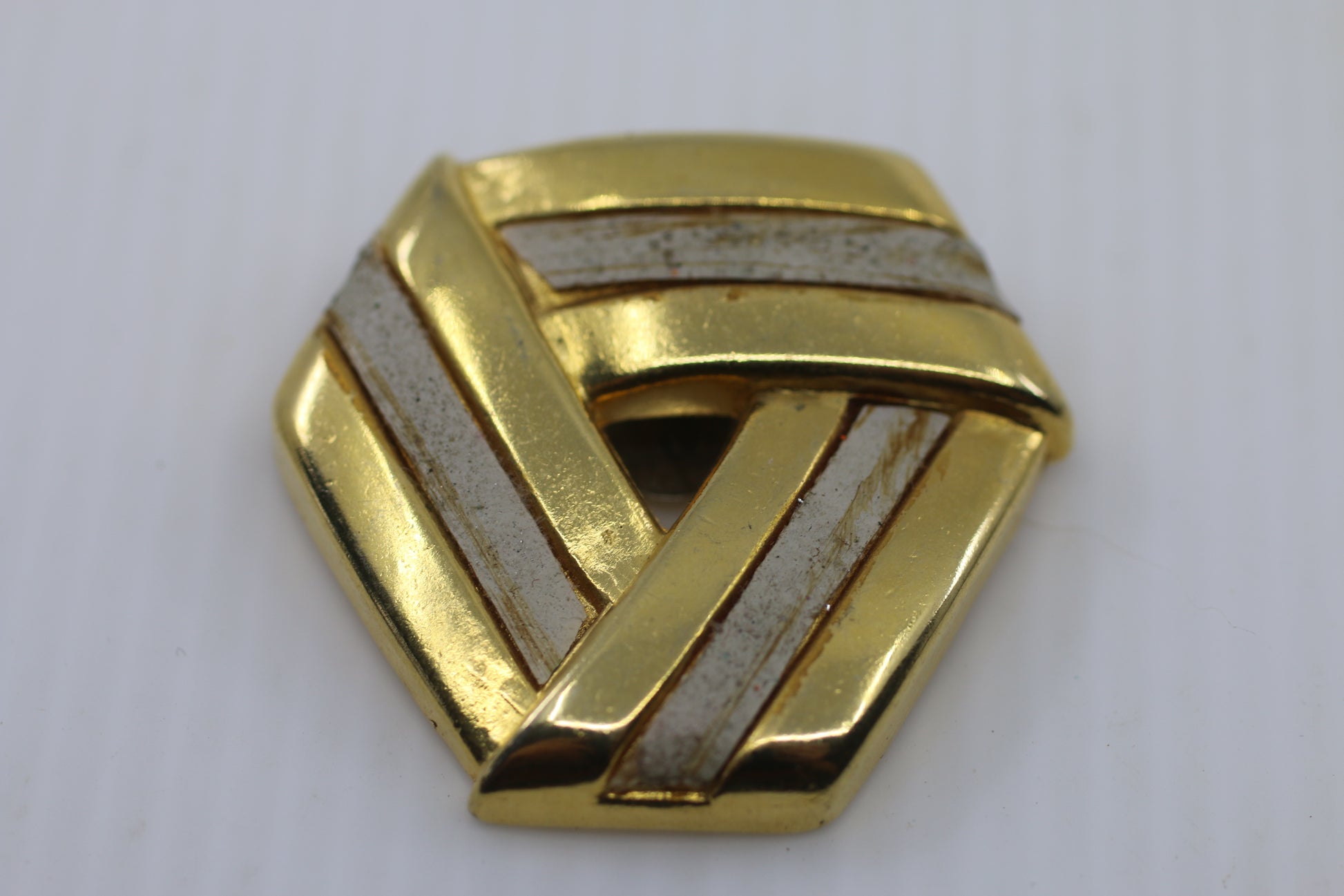 Vintage Geometric Gold Tone Brooch Mid Century Modern Abstract Metal Pin
