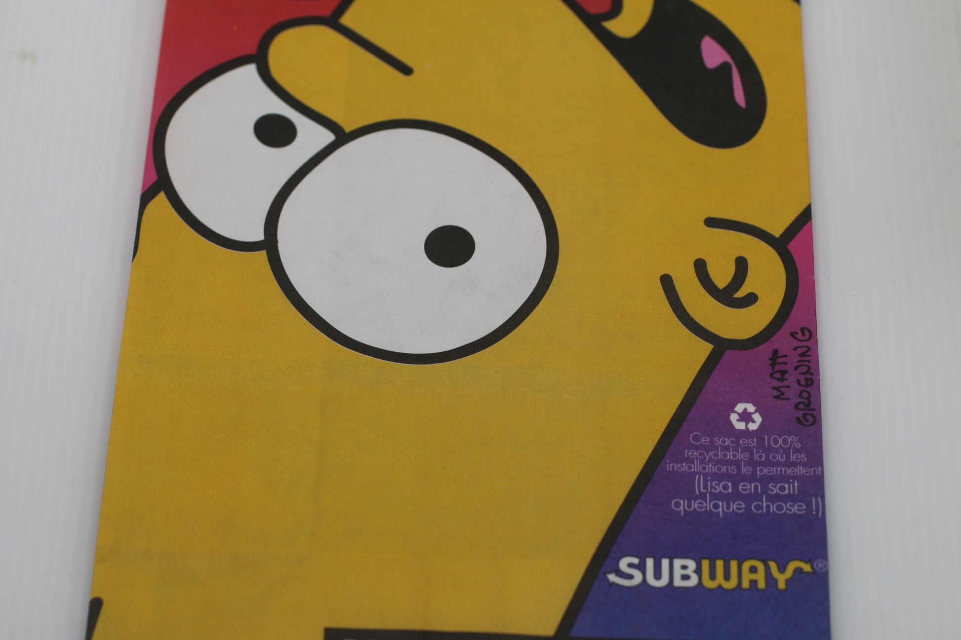Vintage Subway kids meal paper bag featuring The Simpsons artwork.