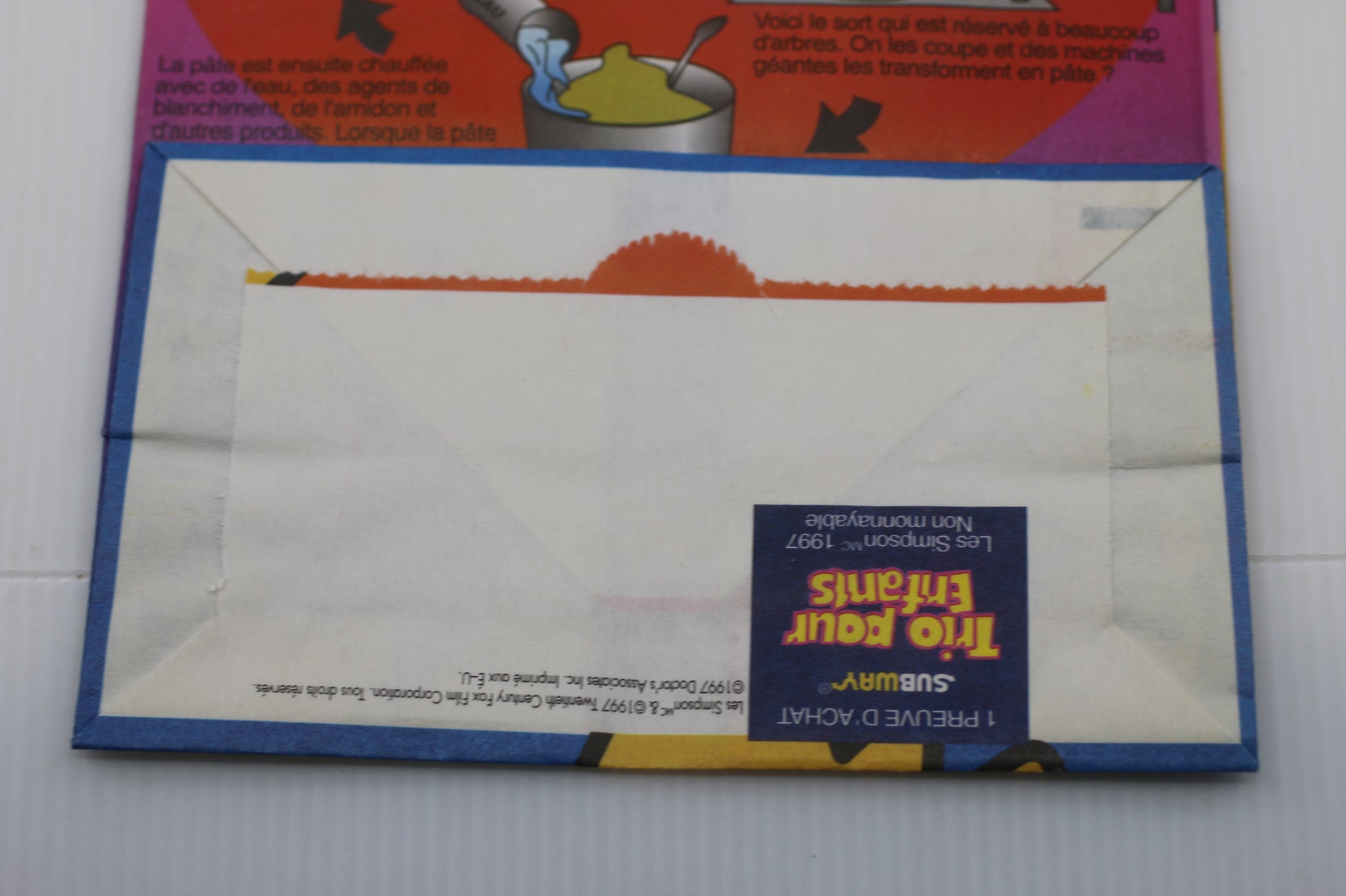 Vintage Simpsons Subway Kids Meal Paper Bag Canada 1990s