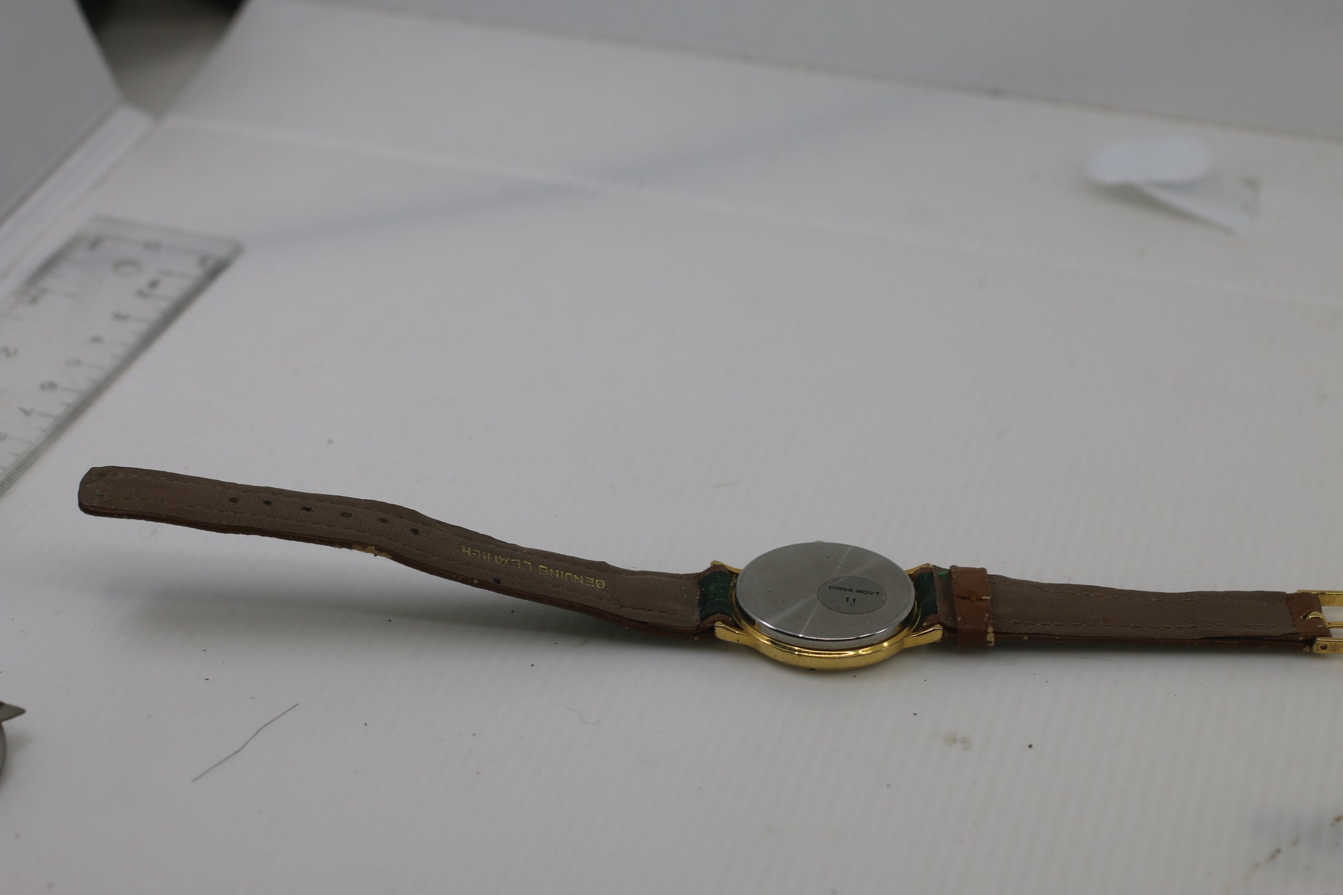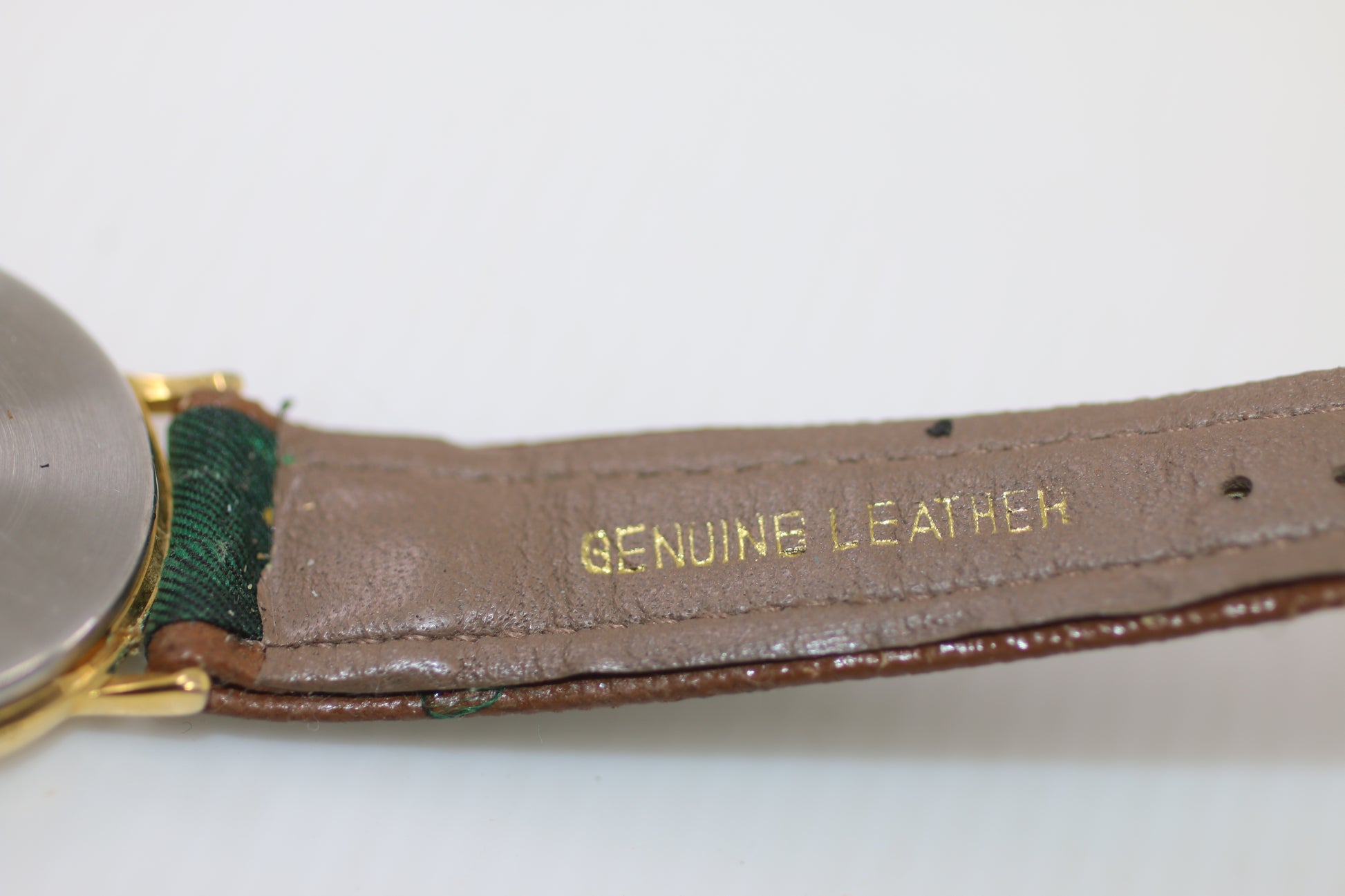 Markings: “Quartz” on dial, “Genuine Leather” on strap