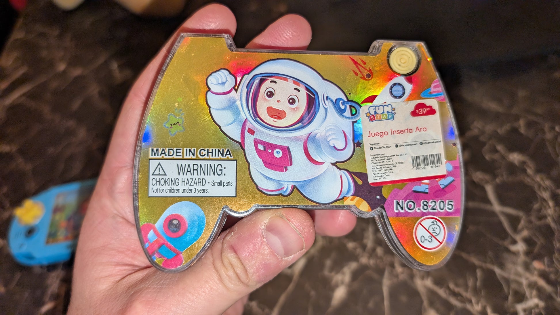 Modern handheld Water Ring Toss game with colorful space / astronaut theme.